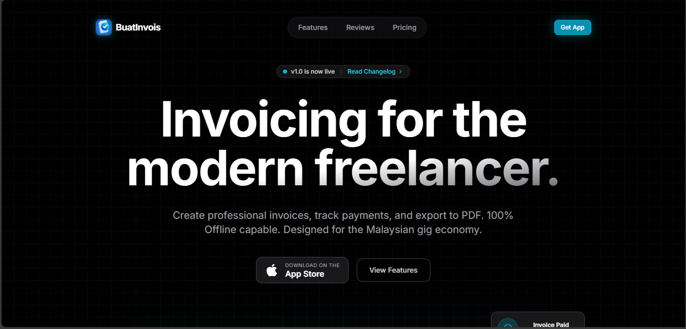 Landing page for BuatInvois - Modern Invoicing for Freelancers